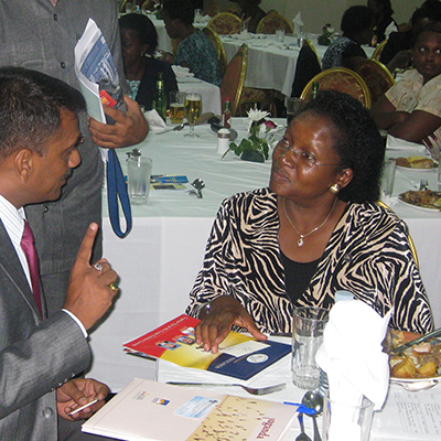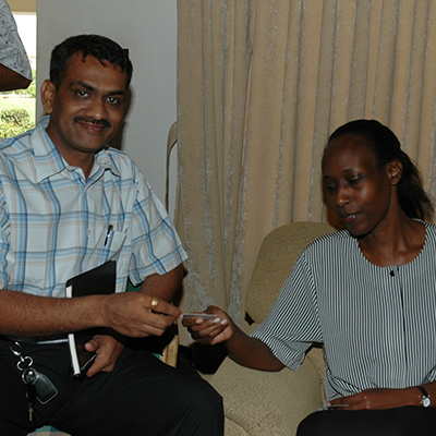 Mnahar Patel - President UFA Discuss with Ms.Ann Mirama SME Relation Manager Bank of Africa in Global Enterpreneuriship week in Ugnada
