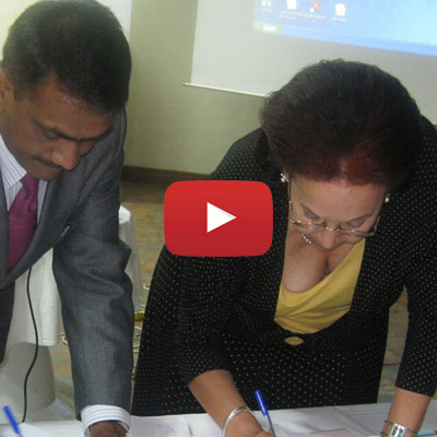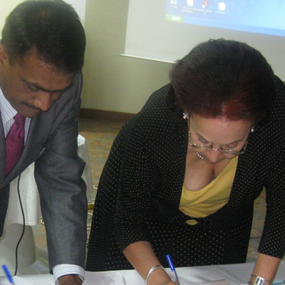 MoU signing between Manhar Patel (President, UFA India) & Pro. Meggi Kigozi (UIA, Govt of Uganda)