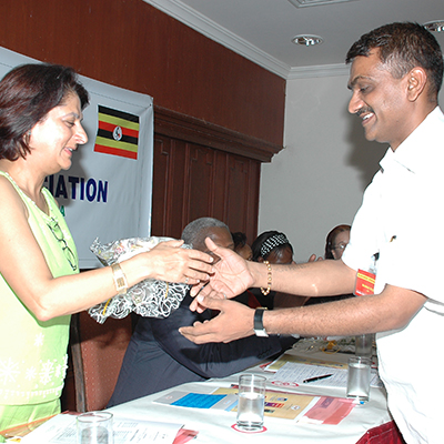 Manhar Patel (President, UFA India) with Prof. Maggie Kigozi (Executive Director, UIA) and other Ugandan Businessmen - at Uganda