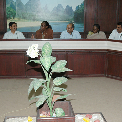 Manhar Patel (President, Uganda Friendship Association) with Hon. Dora Kutesa (Uganda High Commission) and agri-scientists - at SK Agri University