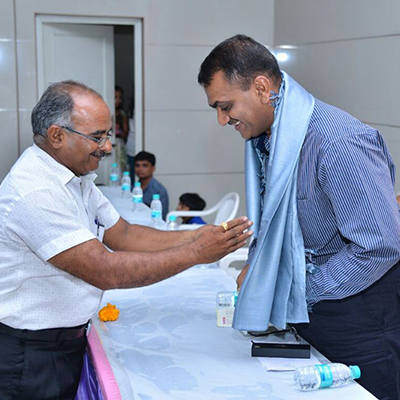 Manhar Patel (President, Shri Taxashila Lokseva Mandal) with Hasmukh Patel (ex-Education Minister of Gujarat), Michael O. Smith (Chairman, NADA USA) and Pargi Jail (SP) at Sabarmati Jail